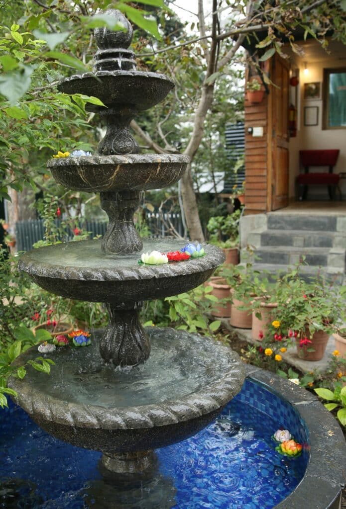 Who says you can’t have a water feature in a small space? A compact tabletop fountain, a slender vertical fountain, or a stylish wall-mounted waterfall can add an element of luxury and serenity, making your front lawn a tranquil spot. These features not only enhance the beauty of your garden but also bring the soothing sound of water, creating a peaceful ambiance.